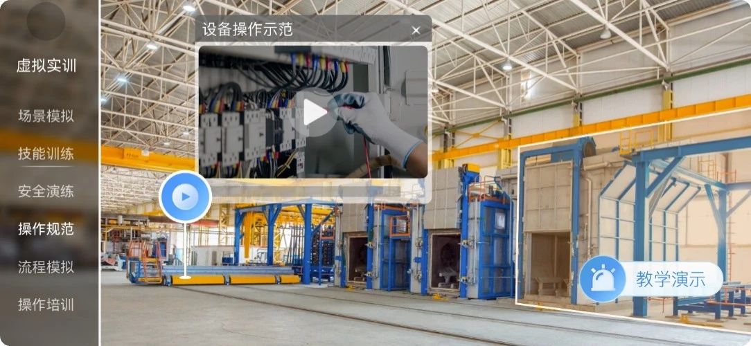 對(duì)于設(shè)備應(yīng)用以及各類巡檢工作,眾趣科技可生成各類模擬仿真實(shí)訓(xùn)內(nèi)容,并嵌入圖文、視頻教學(xué)等進(jìn)行線上操作演示,輔助新員工掌握應(yīng)急技能、巡檢技能、常識(shí)等。同時(shí),對(duì)于工廠車間等場所,客戶無需到現(xiàn)場就可以身臨其境的參觀體驗(yàn),高效提高客戶信任度。