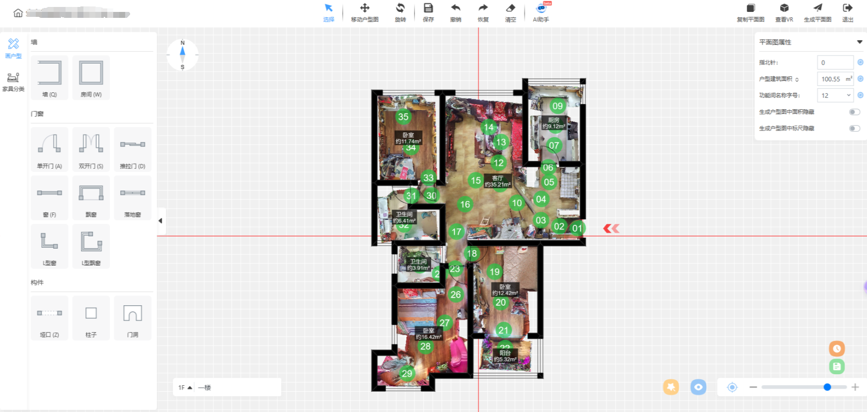 自動化戶型生成:基于識別結(jié)果,系統(tǒng)自動生成符合行業(yè)標(biāo)準(zhǔn)的戶型圖,包括墻體厚度、房間面積、門窗位置等關(guān)鍵信息,達(dá)到了非常高的精準(zhǔn)度。