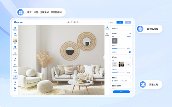 在具體的業(yè)務(wù)實(shí)踐方面,Qverse 三維空間云平臺(tái)將打通行業(yè)業(yè)務(wù)場(chǎng)景的全生命周期鏈路,真正實(shí)現(xiàn)一個(gè)平臺(tái)一站式全搞定,降低企業(yè)搭建三維數(shù)字化空間時(shí)間成本和人力成本,提升交互集成效率,為智慧園區(qū)、工程測(cè)繪、房產(chǎn)營(yíng)銷、家居家裝、文博旅游、展會(huì)展廳、電商零售等不同領(lǐng)域,針對(duì)性解決行業(yè)痛點(diǎn)難題,打造智慧化、可視化、場(chǎng)景化的三維空間服務(wù),滿足用戶不同場(chǎng)景下的多元需求,為多領(lǐng)域的業(yè)務(wù)場(chǎng)景應(yīng)用帶來廣闊的數(shù)字空間想象力。